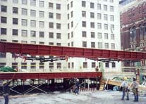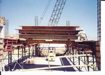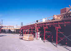 The Design for this swivel header beam system is easy to use. Allows for 12 or 25 kip system. Grading or handeling of stringers for deck panel systems are seldom needed with our deck panel top jack system.